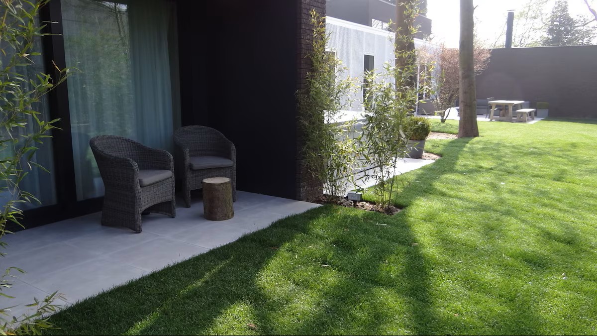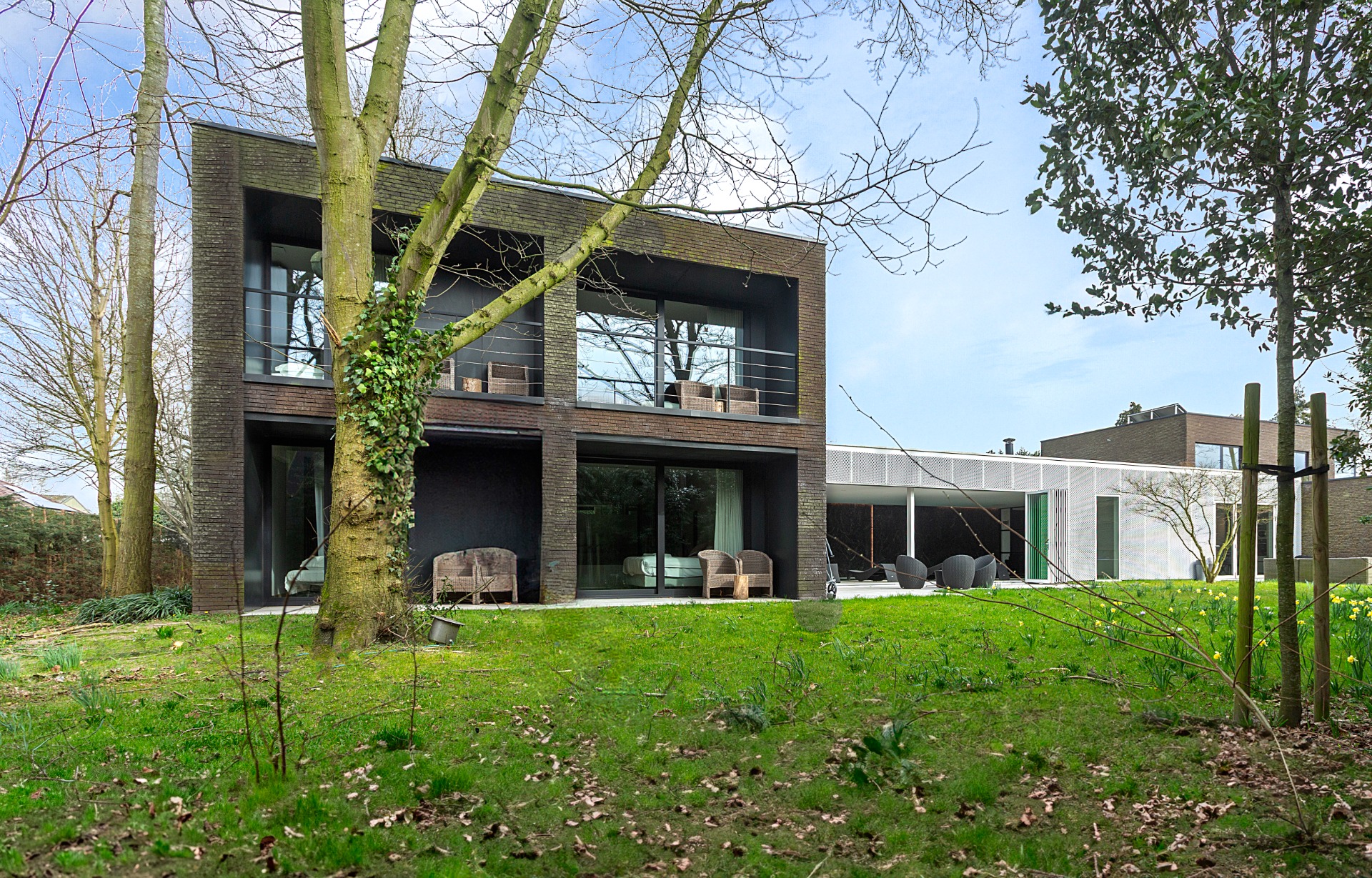 Zachte materialen, rustige tinten en grote raampartijen creëren een verfijnde